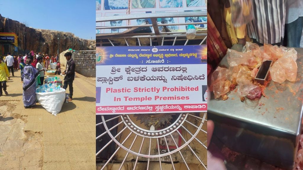 ಕೋಟ್ಯಾಂತರ ಭಕ್ತರ ಆರಾಧ್ಯ ದೇವತೆ, ರಾಜ್ಯದ ಪ್ರಮುಖ ಆದಿಶಕ್ತಿ ದೇವಸ್ಥಾನಗಳಲ್ಲಿ ಒಂದಾದ ಸವದತ್ತಿಯ ಶ್ರೀ ರೇಣುಕಾ ಯಲ್ಲಮ್ಮ ದೇವಸ್ಥಾನಕ್ಕೆ (Sri Renuka Yallamma Temple of Savadatti) ಪ್ರತಿದಿನ ಸಾವಿರಾರು ಭಕ್ತರು ಆಗಮಿಸಿ, ದರ್ಶನ ಪಡೆಯುತ್ತಾರೆ. ಒಂದು ವರ್ಷದಲ್ಲಿ ದೇವಿ ಯಲ್ಲಮ್ಮನ ದೇವಸ್ಥಾನಕ್ಕೆ 1.25 ಯಿಂದ 3 ಕೋಟಿ ಭಕ್ತರ ಭೇಟಿ ನೀಡುತ್ತಾರೆ. ಸವದತ್ತಿ ಯಲ್ಲಮ್ಮ ದೇವಸ್ಥಾನಕ್ಕೆ ಕರ್ನಾಟಕ ಮಾತ್ರವಲ್ಲದೇ ಪಕ್ಕದ ಮಹರಾಷ್ಟ್ರ ಮತ್ತು ಗೋವಾ ರಾಜ್ಯಗಳಿಂದಲೂ ಭಕ್ತರು ಆಗಮಿಸುತ್ತಾರೆ. ಇಷ್ಟೊಂದು ಪ್ರಮಾಣದಲ್ಲಿ ಭಕ್ತರು ಭೇಟಿ ನೀಡುವ ಸವದತ್ತಿ ಯಲ್ಲಮ್ಮನ ದೇವಸ್ಥಾನ ಮತ್ತು ಸುತ್ತಮುತ್ತಲಿನ ಪ್ರದೇಶ ಅವ್ಯವಸ್ಥೆಯ ಆಗರವಾಗಿದೆ. ದೇವಿಯ ದರ್ಶನಕ್ಕೆ ತೆರಳುವ ಭಕ್ತರಿಗೆ ಮೊದಲು ಸಿಗುವವರೇ ಪಾರ್ಕಿಂಗ್ಗಾಗಿ ಹಣ ಪಡೆಯುವ ದಲ್ಲಾಳಿಗಳು. ಒಂದು ಕಾರ್ ಪಾರ್ಕ್ಗೆ 50 ರೂ. ಹಣ ಪಡೆಯುತ್ತಾರೆ. ಇಲ್ಲಿ ಹಣ ಕೊಡಲು ಭಕ್ತರು ಹಿಂಜರಿಯುವುದಿಲ್ಲ, ಆದ್ರೆ, ಹಣ ಕೊಟ್ಟಹಾಗೆ ಪಾರ್ಕಿಂಗ್ ವ್ಯವಸ್ಥೆ ಇದೆಯೇ? ಇಲ್ಲ. ಎಲ್ಲೆಂದರಲ್ಲಿ ವಾಹನಗಳನ್ನು ಪಾರ್ಕ್ ಮಾಡಲಾಗುತ್ತದೆ. ಶಿಸ್ತುಬದ್ಧವಾಗಿ ಪಾರ್ಕ್ ಮಾಡಲು ಸ್ಥಳವಿಲ್ಲ. ಇದರಿಂದ ಟ್ರಾಫಿಕ್ ಜಾಮ್ ಉಂಟಾಗುತ್ತದೆ. ವಾಹನವನ್ನು ಪಾರ್ಕ್ ಮಾಡಿ, ಕೆಳಗಿಳಿದರೇ, ಮಲ-ಮೂತ್ರ ಸ್ವಾಗತ. ಎಲ್ಲೆಂದರಲ್ಲಿ ಮಲ-ಮೂತ್ರ ವಿಸರ್ಜನೆ ಮಾಡಿರುವುದನ್ನು ಮತ್ತು ಮಾಡುತ್ತಿರುವುದನ್ನು ಕಾಣಬಹುದು. ಯಲ್ಲಮನ ಗುಡ್ಡದ ತುಂಬೆಲ್ಲ ಮಲ-ಮೂರ್ತದ ವಾಸನೆ. ಮತ್ತು ಕೊಳಚೆ ನೀರು ರಸ್ತೆ ಮೇಲೆ ಹರಿದು ದುರ್ವಾಸನೆ ಬರುತ್ತಿದೆ. ಮುಂದುವರೆದು, ಗುಡ್ಡದ ಮೇಲಿಂದ ಹರಿದು ಬರುವ ಪವಿತ್ರ ನೀರನ್ನು ಸಿಂಪಡಿಸಿಕೊಳ್ಳಲು ಎಣ್ಣೆ ಹೊಂಡಕ್ಕೆ ಹೋದರೆ, ಅಲ್ಲಂತೂ ದುರ್ವಾಸನೆ, ಎಲ್ಲೆಂದರಲ್ಲಿ ಬಿಸಾಡಿದ ಬಟ್ಟೆಗಳು ಕಂಡು ವಾಕರಿಕೆ ಬರದೆ ಇರದು. ಇಲ್ಲಿ, ಪ್ಲಾಸ್ಟಿಕ್ ಬಳಕೆ ನಿಷೇಧಿಸಲಾಗಿದೆ ಎಂಬ ಸರ್ಕಾರದ ಬೋರ್ಡ್ ಕಾಣ್ತು. ಈ ಬೋರ್ಡ್ ತೋರಿಕೆಗಾಗಿ ಹಾಕಲಾಗಿದೆ ಅಂತ ಅನ್ನಿಸಿತು. ಏಕೆಂದರೆ, ಆ ಬೋರ್ಡ್ ಮುಂದೆಯೇ ಖಾಲಿ ಪ್ಲಾಸ್ಟಿಕ್ ಬಾಟಲ್ಗಳನ್ನು 10-20 ರೂ.ಗೆ ಮಾರಾಟ ಮಾಡಲಾಗುತ್ತಿತ್ತು. ಭಕ್ತರು ಎಣ್ಣೆ ಹೊಂಡದ ನೀರು ತುಂಬಿಕೊಂಡು ಹೋಗಲು, ಅಲ್ಲಿನ ಸ್ಥಳೀಯರು ಬಾಟಲಿಗಳನ್ನು ಮಾರಾಟ ಮಾಡುತ್ತಿದ್ದಾರೆ. ಈ ಸೌಭಾಗ್ಯಕ್ಕೆ ಪ್ಲಾಸ್ಟಿಕ್ ನಿಷೇಧ ಎಂಬ ಬೋರ್ಡ್ ಏಕೆ? ಎಣ್ಣೆ ಹೊಂಡದಲ್ಲಿ ಸ್ನಾನ ಮಾಡಿದ ಭಕ್ತರು ಹಸಿ ಬಟ್ಟೆಗಳನ್ನು ಅಲ್ಲಿಯೇ ಬಿಟ್ಟು ಹೋಗುತ್ತಾರೆ. ಮಲಿನ ಬಟ್ಟೆಗಳು ರಾಶಿರಾಶಿಯಾಗಿ ಬಿದ್ದಿವೆ. ಎಣ್ಣೆ ಹೊಂಡದ ನೀರು ಹರಿದು ಹೋಗುವ ಜಲಾಯನ ಕಾಲುವೆ ಚರಂಡಿಯಂತೆ ಆಗಿದೆ. ಈ ನೀರು ಮುಂದೆ, ಜೋಗುಳ ಬಾವಿಯನ್ನು ಸೇರುತ್ತದೆ. ದೇವಸ್ಥಾನದ ಒಳಗಡೆ ಮತ್ತು ಹೊರಗಡೆ ಸ್ವಚ್ಛತೆ ಎಂಬುವುದು ಮರಿಚಿಕೆಯಾಗಿದೆ. ದೇವಸ್ಥಾನದ ಒಳಗಡೆ ಸರತಿ ಸಾಲಿನಲ್ಲಿ ನಿಂತಾಗ, ಐಸ್ಕ್ಯಾಂಡಿ ಮಾರುವವರ ದಂಡೇ ಇದೆ. ಪ್ರತಿ ಸಾಲಿಗೆ ಒಬ್ಬರಂತೆ ನಿಂತು ಮಾರಾಟ ಮಾಡುತ್ತಾರೆ. ಎಲ್ಲೆಂದರಲ್ಲಿ ಪ್ಲಾಸ್ಟಿಕ್ ಬಳಕೆ, ನಾಮಕಾವಸ್ತೆ ಬೋರ್ಡ್ ಭಕ್ತರು ಐಸ್ಕ್ಯಾಂಡಿ ತೆಗೆದುಕೊಂಡು ಪ್ಲಾಸ್ಟಿಕ್ ಅಲ್ಲೇ ಬಿಸಾಡಿ ಹೋಗುತ್ತಾರೆ. ಇದು ಮಾತ್ರವಲ್ಲದೇ, ಶೇಂಗಾ, ಹುರಕಡ್ಲಿ ಸೇರಿದಂತೆ ವಿವಿಧ ತಿನಿಸುಗಳನ್ನು ಪ್ಲಾಸ್ಟಿಕ್ ಕವರ್ನಲ್ಲಿ ಮಾರಾಟ ಮಾಡುತ್ತಾರೆ. ಅಲ್ಲಿಯೂ ಪ್ಲಾಸ್ಟಿಕ್ ಬಳಕೆ ನಿಷೇಧಿಸಲಾಗಿದೆ ಎಂಬ ಬೋರ್ಡ್ ಕಂಡುಬಂತು. ಈ ಬೋರ್ಡ್ ನಾ